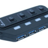 The MediaRange USB 3.0 Hub with four ports to connect up to four USB 3.0 devices (e.g. mouse, keyboard, printer, external hard drive) at a single USB port. Each port has a separate switch to activate or deactivate single devices. The power is supplied via an additional power supply unit which is included.