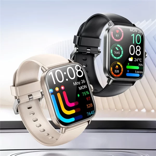 Large HD Display 1.83-inch TFT screen with 240*284 high-resolution display, featuring full touch capabilities and anti-fingerprint coating for clear visibility. Long Battery Life 300mAh large-capacity battery provides 5-7 days of usage on a single charge, with a quick 2.5-hour charging time. Advanced Health Monitoring Dynamic 24-hour real-time heart rate and blood oxygen monitoring for comprehensive health tracking. Versatile Sports Modes Over 100 sports modes to cater to various fitness activities and workout preferences. Smart Connectivity Supports message notifications for Android/iOS phones and enables Bluetooth-compatible calling for seamless communication. Professional Water Resistance IP68 water resistance rating for protection against water and dust in daily use.