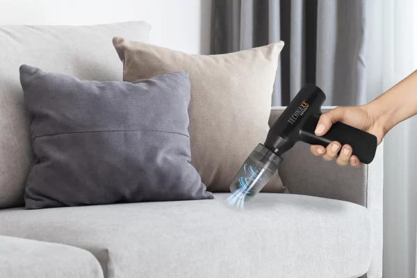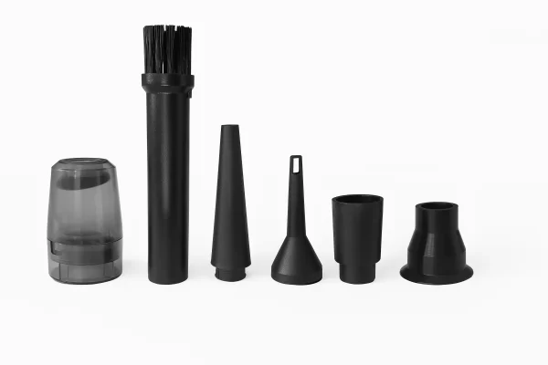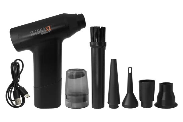 160W powerful motor. Perfect for thorough cleaning of fine dust on computers, keyboards, sofas and cars. Dust container for vacuuming crumbs. Stepless speed control. 5 attachments for different applications of the blower.