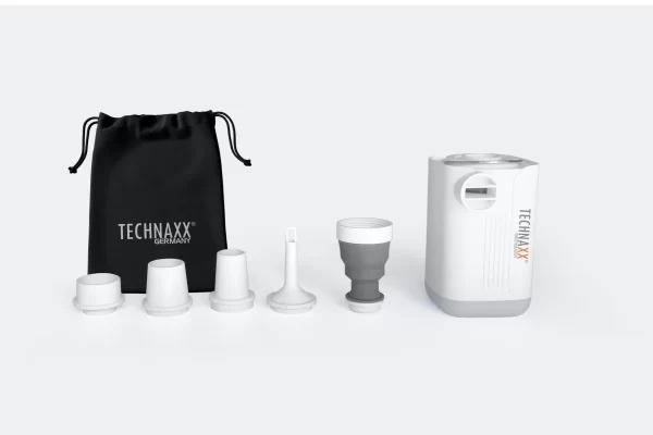 Powerful air pump. Large battery. Power bank function. LED light. With 5 nozzles, suitable for most small and large inflatable products, such as air mattresses, inflatable beds, sleeping pillows, swimming rings, inflatable furniture and other inflatable toys.