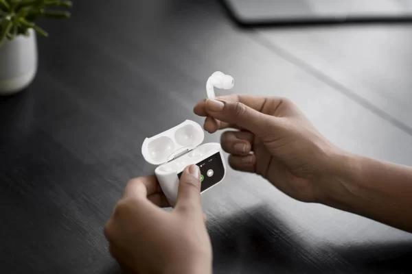 True Wireless Stereo (TWS) in-ear headphones with active noise cancellation (ANC), Multifunctional touchscreen on the charging box, Bluetooth V5.3, Built-in microphone for phone calls.