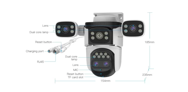 Vstarcam outdoor camera 4G With Solar Panel 3MP 3Lens dual view 10X Zoom IP66 waterproof
