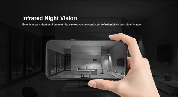 F2.0 large aperture, more light intake, clearer night vision, Infrared night vision, indoor night vision distance 8-10 meters, WiFi connection, remote access, ISP image processing technology, preserving true colors, Human detection, real time alerts.